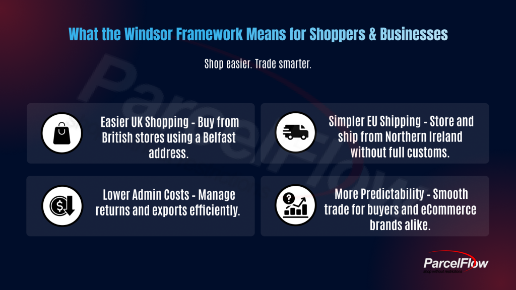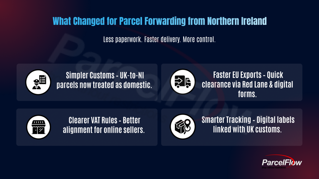 For individuals and businesses relying on Northern Ireland parcel forwarding, this agreement redefined how goods move across the Irish Sea and into the EU especially for cross-border eCommerce, warehousing & logistics providers in Belfast.
