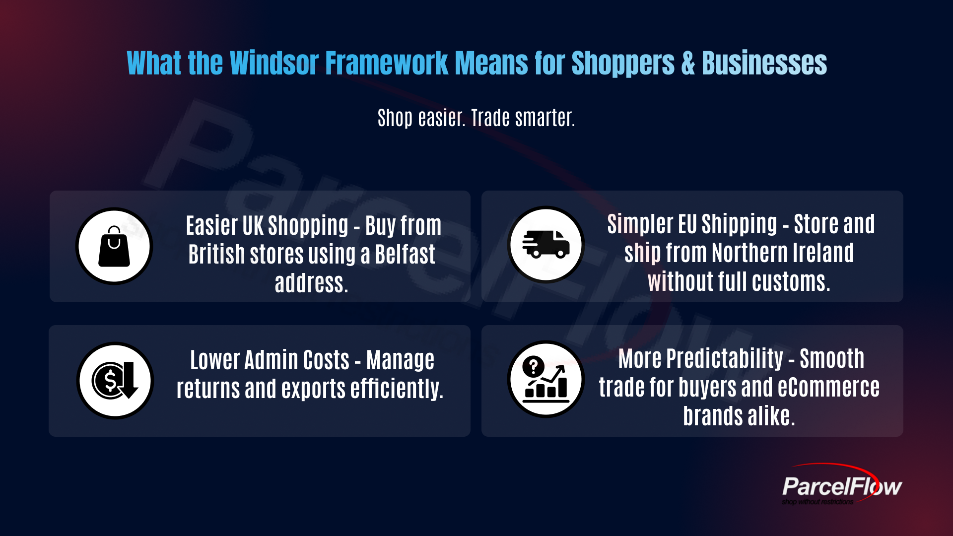 At ParcelFlow, we’ve built our service around the latest Windsor Framework rules ensuring every parcel moves smoothly between the UK, Northern Ireland, and the EU.